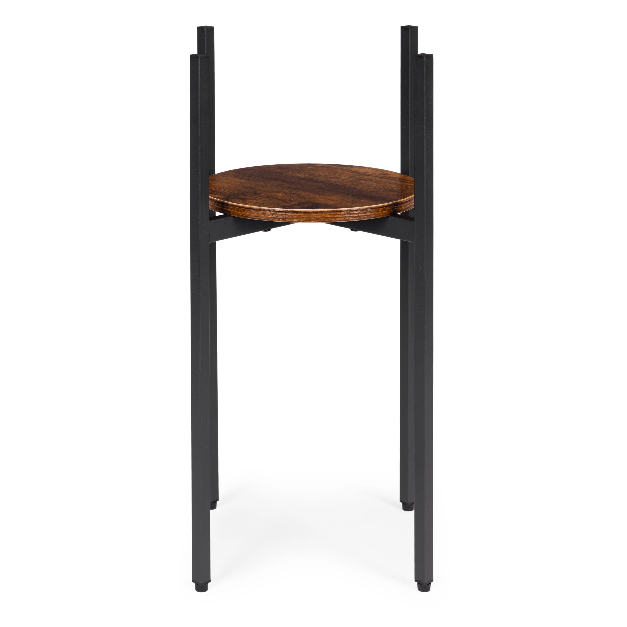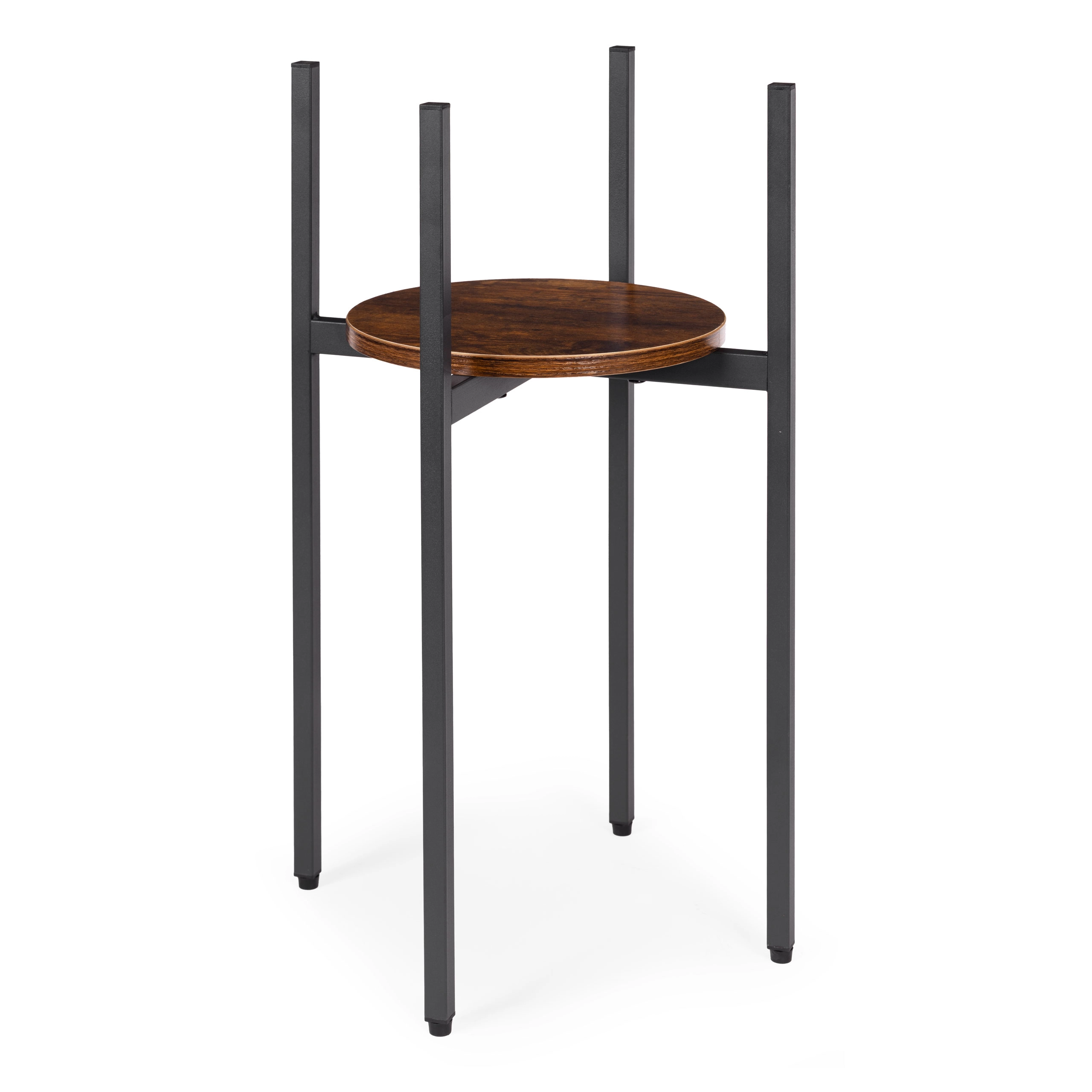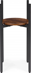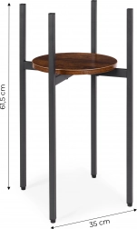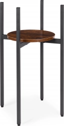 Okrągły blat z płyty wiórowej w ciemnym dekorze drewna nadaje wnętrzu loftowy akcent i zapewnia stabilną powierzchnię dla kwiatów, wazonów i drobnych dekoracji.