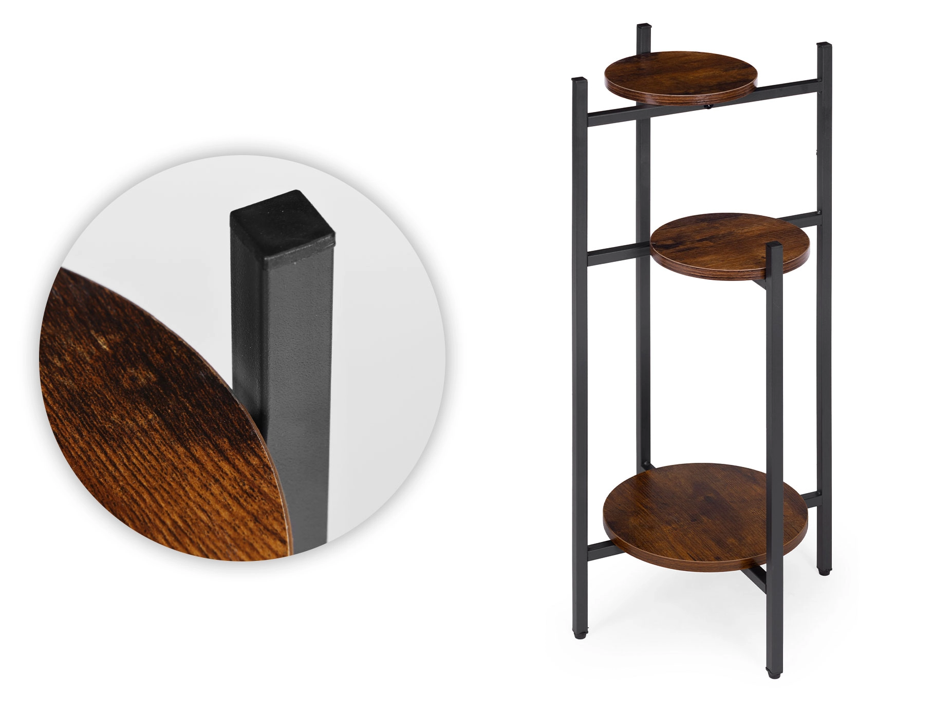 Trzy okrągłe półki na różnych wysokościach umożliwiają wyeksponowanie większej liczby roślin bez zajmowania cennej powierzchni podłogi. Idealny do rogów, przy oknie i obok sofy.