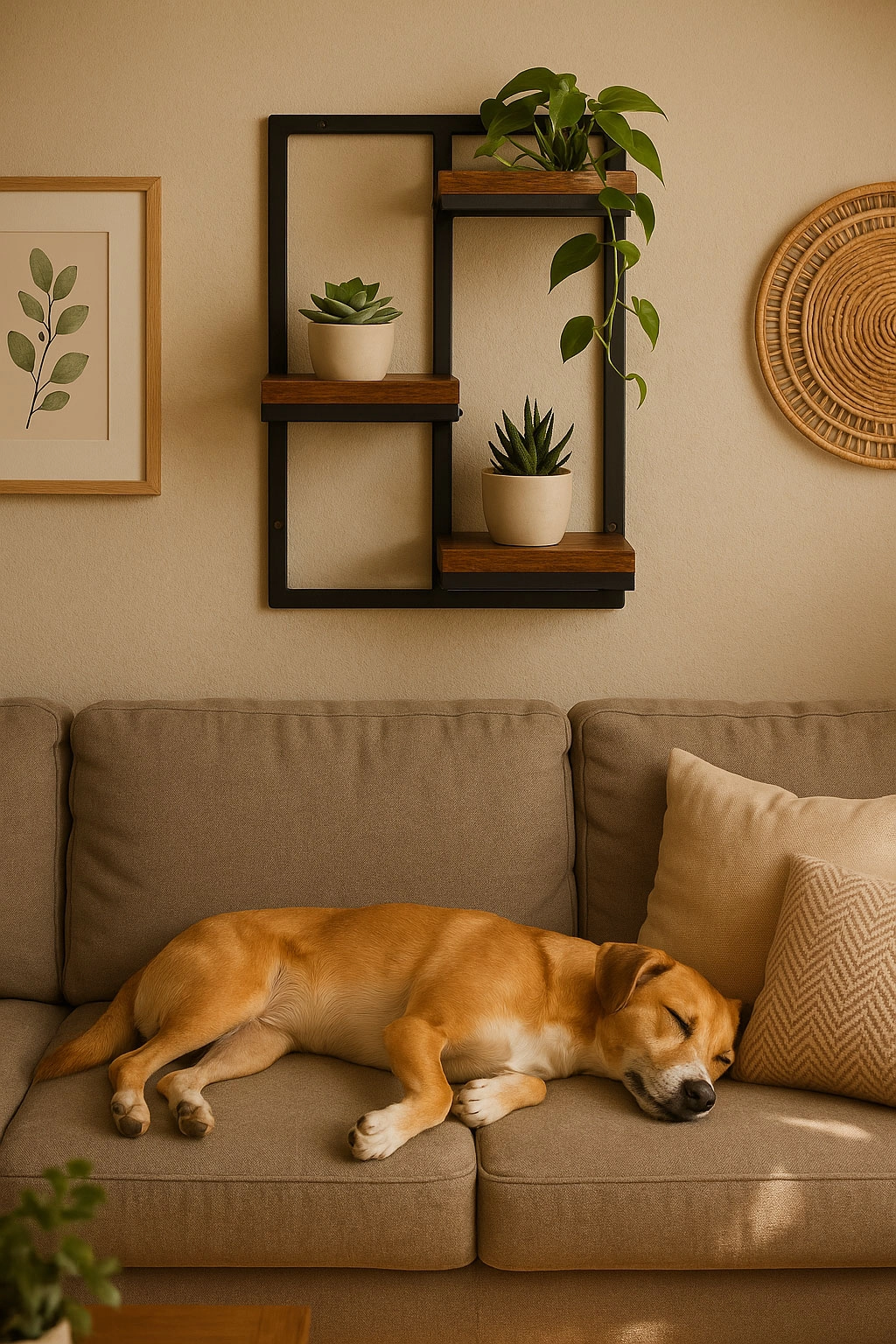 - Trzy poziomy przestrzeni – idealne na małe doniczki, książki i dekoracje.