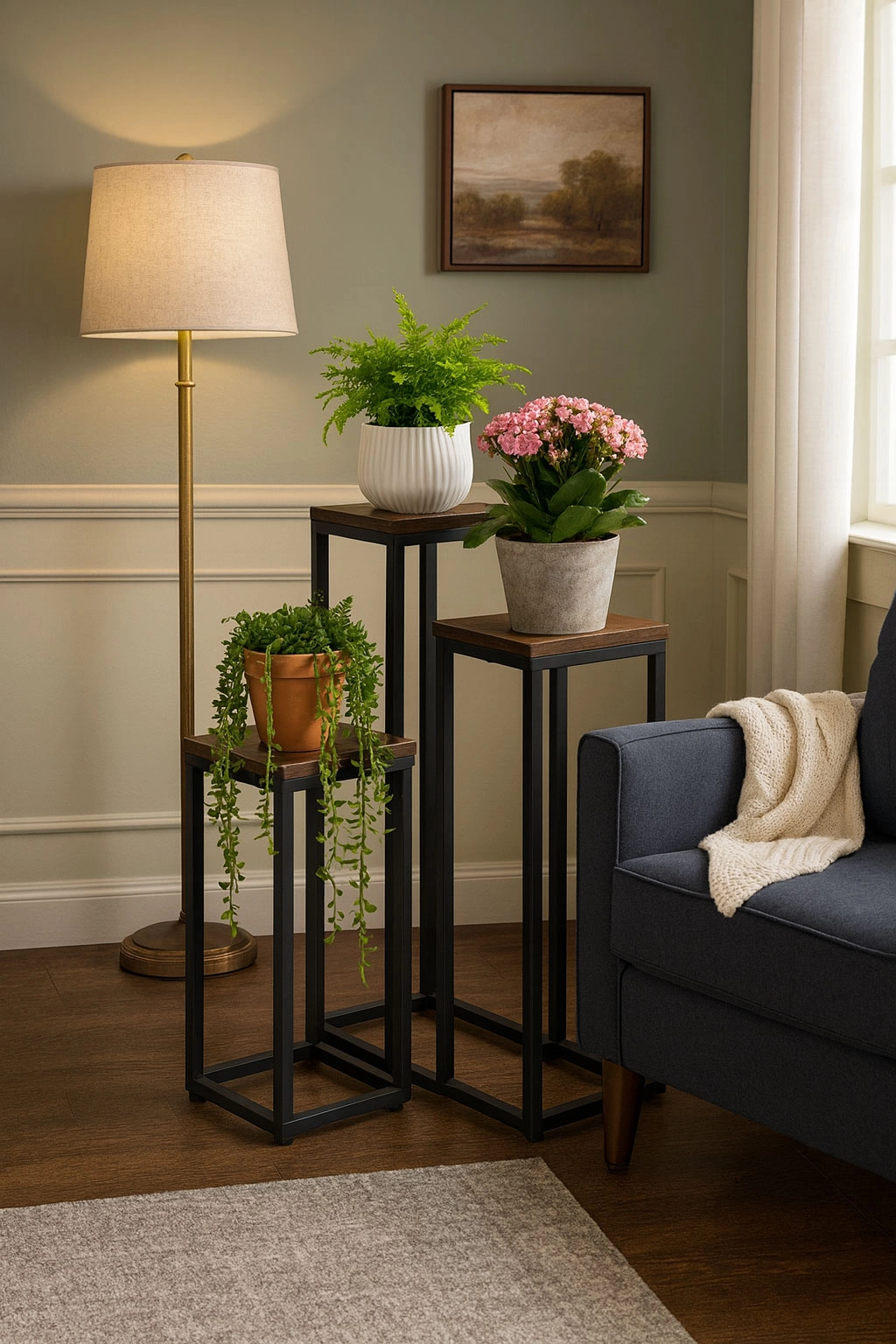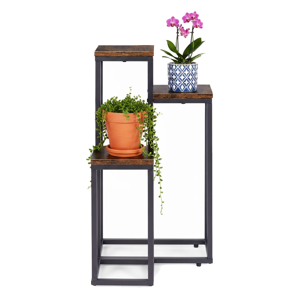 Wyeksponuj swoje ulubione rośliny doniczkowe stylowo i przejrzyście. Loftowy stojak na kwiaty łączy industrialny wygląd z praktycznym rozwiązaniem do codziennego użytkowania – trzy stopniowane wysokościowo półki ułatwiają pielęgnację roślin, poprawiają dostęp do światła i ocieplają wnętrze. Dzięki uniwersalnym wymiarom sprawdzi się w salonie, gabinecie, korytarzu czy kuchni na zioła.