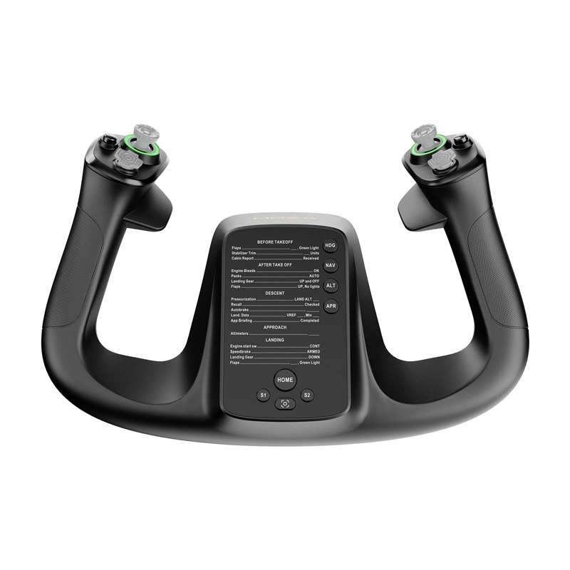 W zestawie znajdują się dwa magnetyczne przednie panele umożliwiające łatwą personalizację wyglądu w zależności od typu samolotu. Sterowanie i profile wygodnie zarządzasz w oprogramowaniu MOZA Cockpit lub za pomocą skrótów klawiszowych bezpośrednio na wolancie.