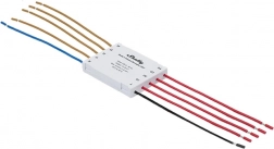 Kompaktowa obudowa (44 × 34 × 7 mm), masa tylko 25 g oraz przygotowane przewody ułatwiają instalację nawet w małych puszkach.