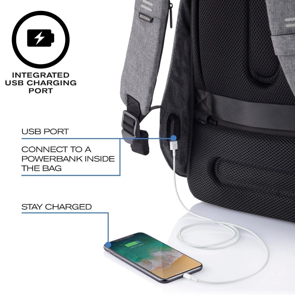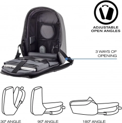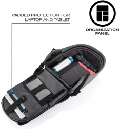 Stylowy i kompaktowy plecak do miasta i podróży z naciskiem na antykradzieżową konstrukcję, ukryte zamki i kieszenie z RFID, odporność na przecięcie oraz wodoodporny materiał. Oferuje wyściełane przegrody na laptop 13,3" i tablet 12,9", przemyślany organizer, zintegrowany port USB oraz elementy odblaskowe dla bezpiecznego i wygodnego poruszania się na co dzień.