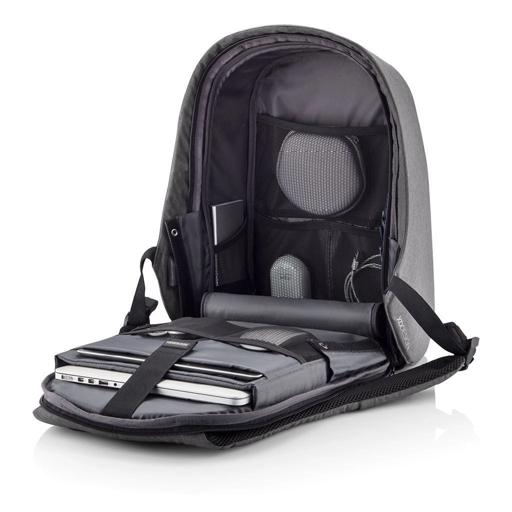 BOBBY Hero Small to nowoczesny plecak miejski zaprojektowany z myślą o maksymalnym bezpieczeństwie i komforcie. Główna komora otwierana wyłącznie od strony pleców, ukryte zamki oraz kieszenie z ochroną RFID chronią Twoje wartościowe przedmioty, a odporna na przecięcie konstrukcja i wodoodporne materiały RPET niezawodnie stawiają czoła wyzwaniom codziennych dojazdów i podróży.