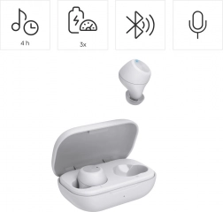 Sterowanie dotykowe umożliwia intuicyjne przewijanie utworów, zmianę głośności i obsługę połączeń. Wbudowany mikrofon oraz pasywna redukcja hałasu dbają o wyraźne rozmowy i wciągające brzmienie. W zestawie znajdziesz 3 pary silikonowych końcówek (S/M/L) dla idealnego dopasowania i całodziennego komfortu.