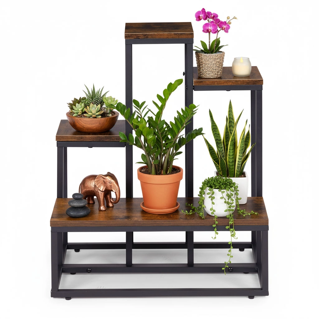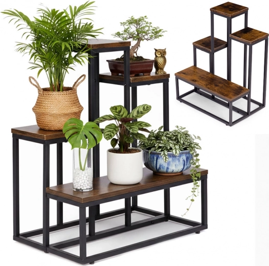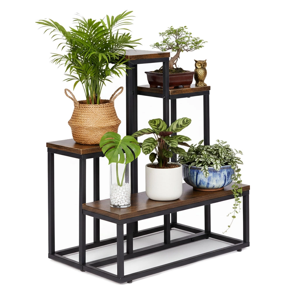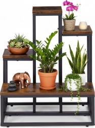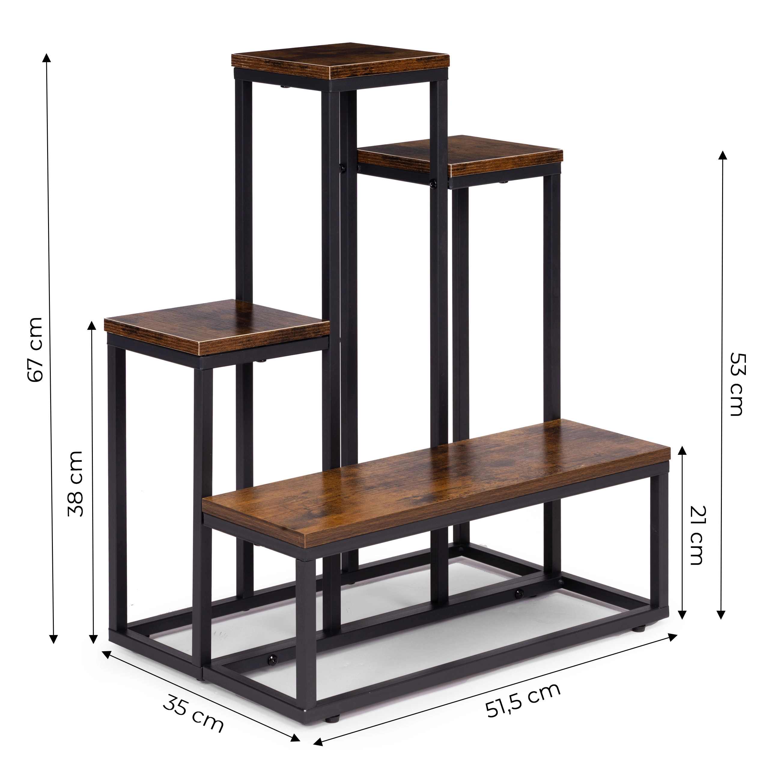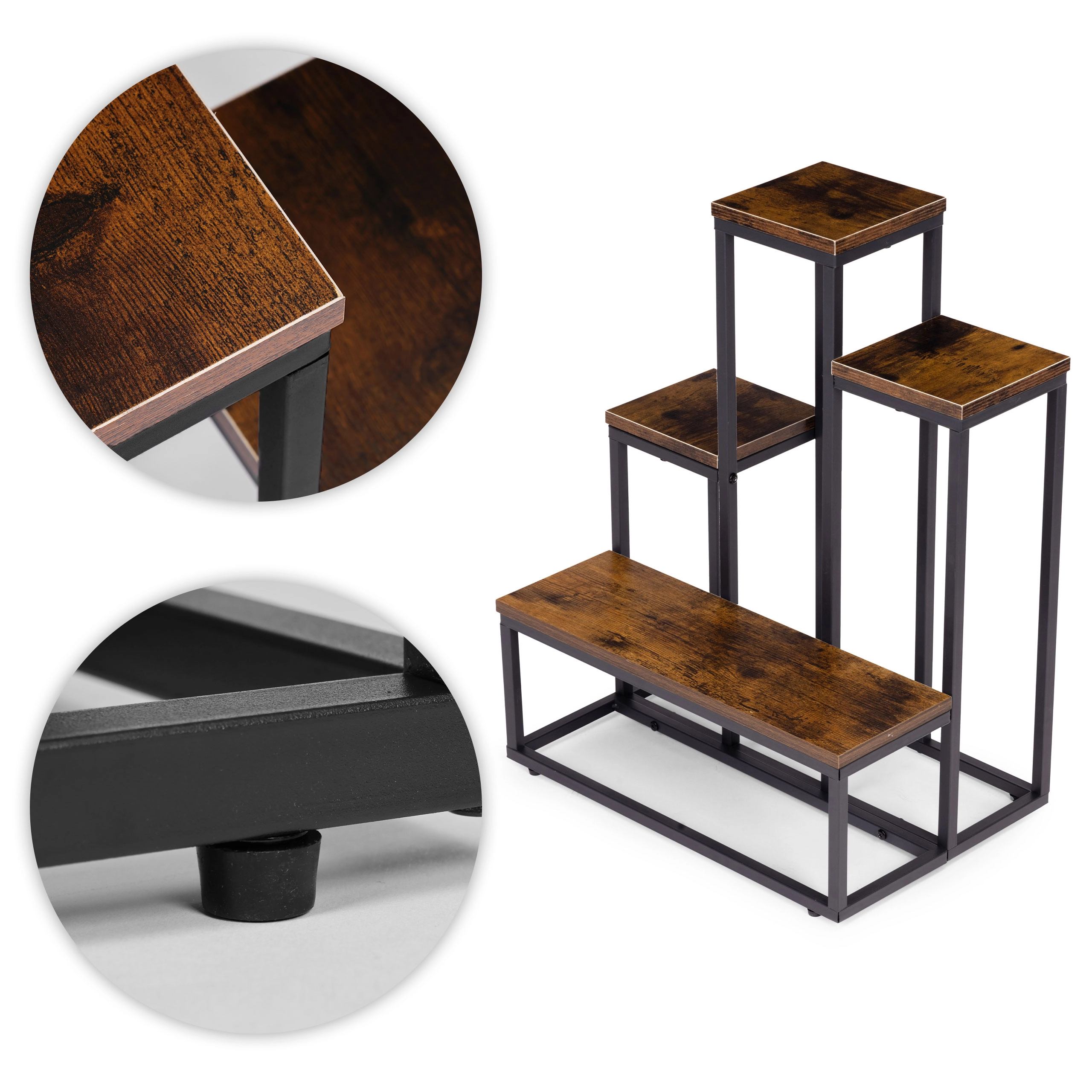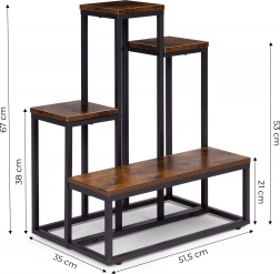 Wyeksponuj ulubione rośliny stylowo i przejrzyście. Stojak na kwiaty w industrialnym designie dzięki uniwersalnemu wykonaniu łatwo wkomponuje się w nowoczesne wnętrza i domowe biuro. Wielopoziomowe rozmieszczenie sprzyja lepszemu dostępowi do światła i pozwala stworzyć elegancką zieloną kompozycję w każdym pomieszczeniu.