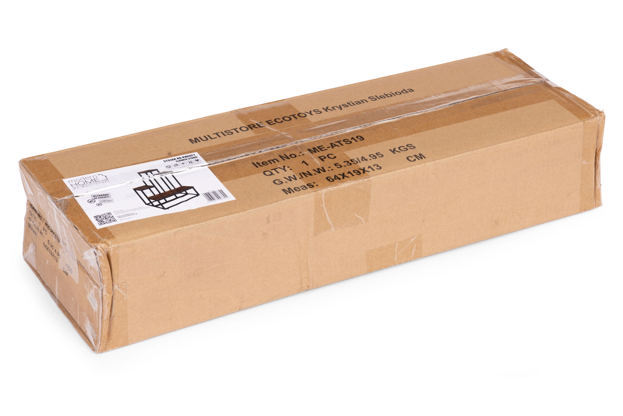 Konstrukcja z stali malowanej proszkowo zapewnia wysoką odporność na korozję i zużycie mechaniczne. Półki z laminowanej płyty wiórowej (DTD) w dekorze drewna podkreślają loftowy charakter i są łatwe w utrzymaniu. Antypoślizgowe stopki stabilizują mebel i jednocześnie chronią podłogę przed zarysowaniami.