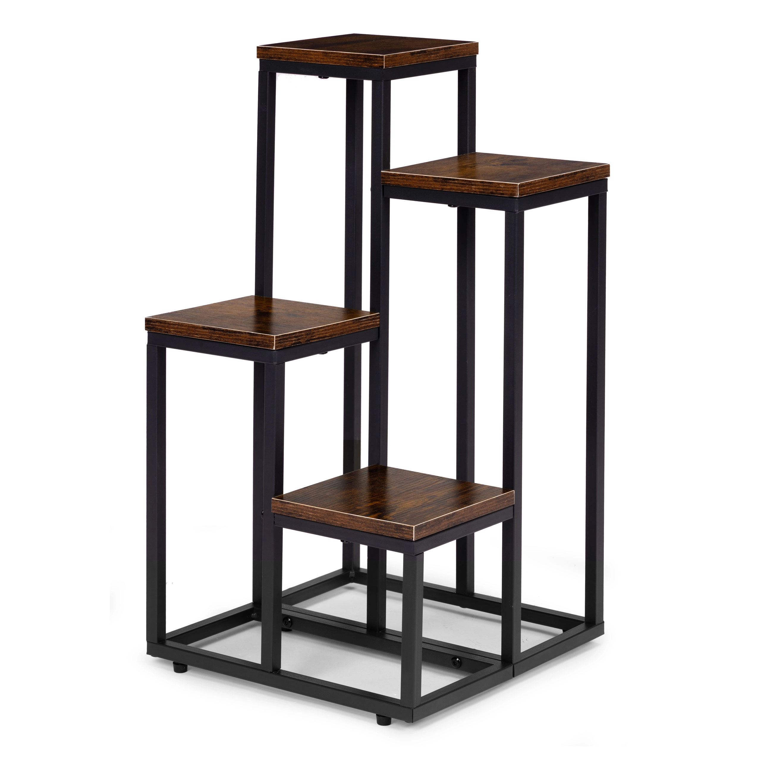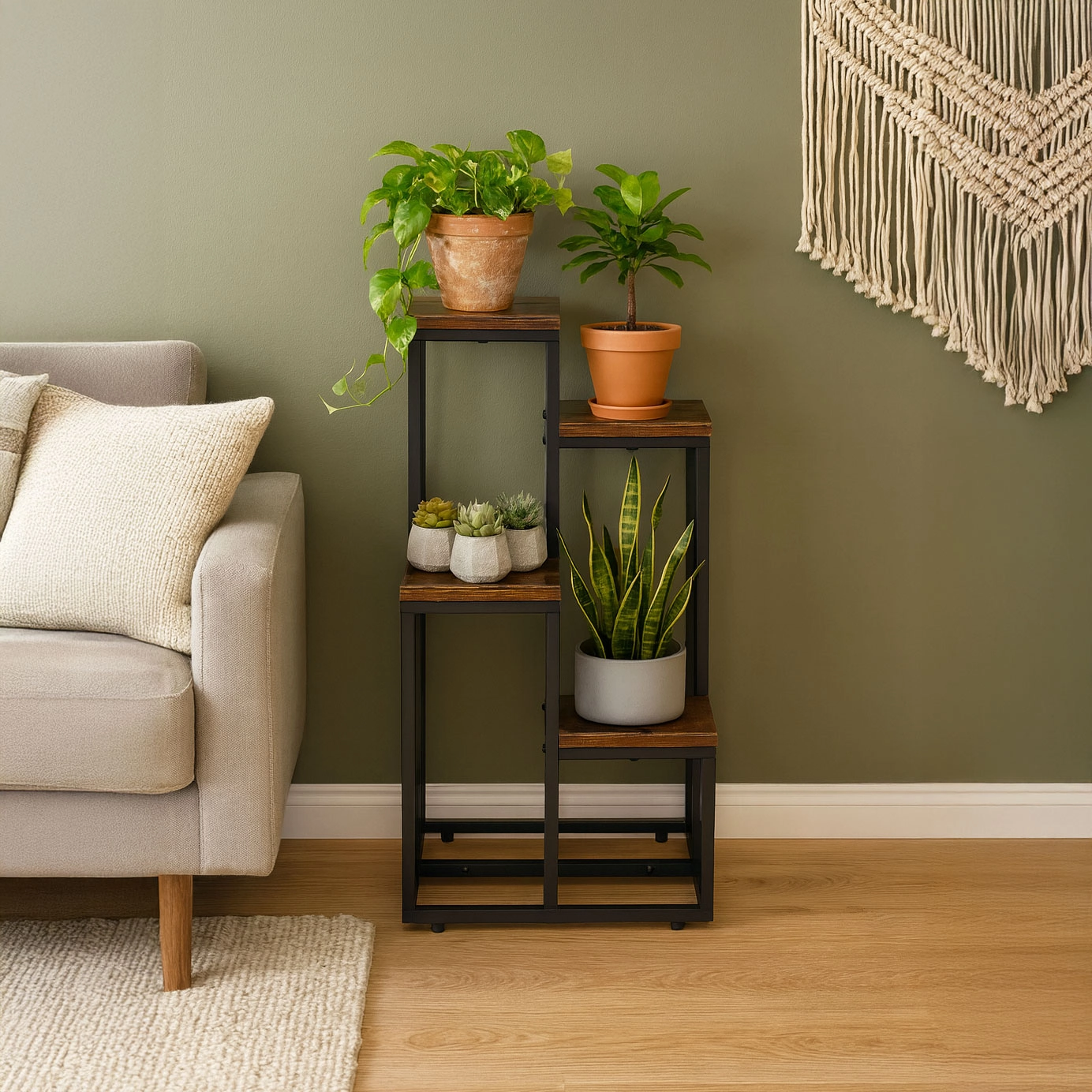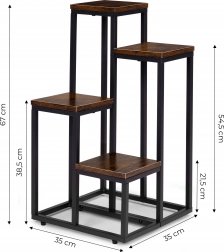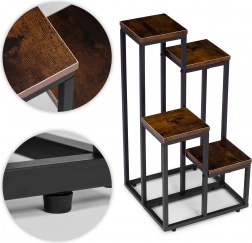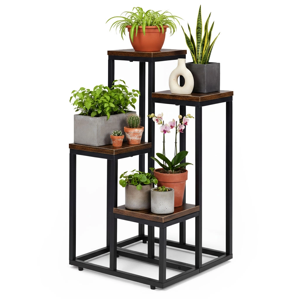 Stylowy stojak na kwiaty w stylu loft z metalową konstrukcją malowaną proszkowo i 4 praktycznymi półkami oszczędza miejsce i elegancko eksponuje rośliny. Dzięki stabilnej konstrukcji, antypoślizgowym nóżkom oraz kompaktowym wymiarom pasuje do salonu, biura i przestrzeni komercyjnych. Uniwersalny design podkreśla zieleń i nadaje wnętrzu nowoczesny, industrialny charakter.
