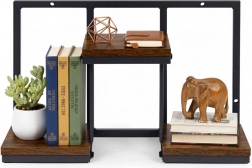 Stylowa wisząca półka ścienna na rośliny w industrialnym designie łączy solidną stalową ramę z praktycznymi półkami w dekorze drewna. Oferuje trzy poziomy na zioła, sukulenty i rośliny zwisające, łatwy montaż do ściany z dołączonym zestawem mocowań oraz udźwig do 15 kg – idealna do kuchni, salonu i łazienki.