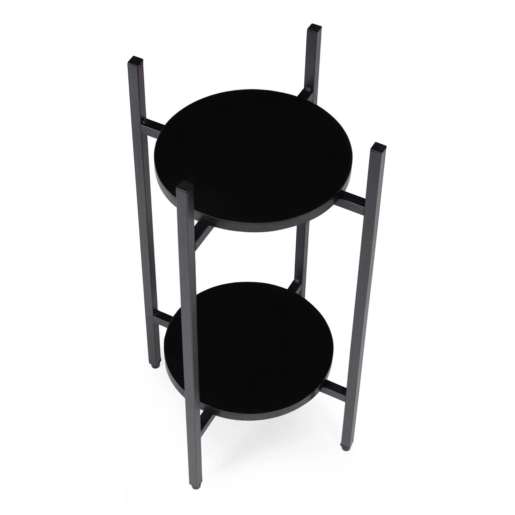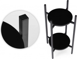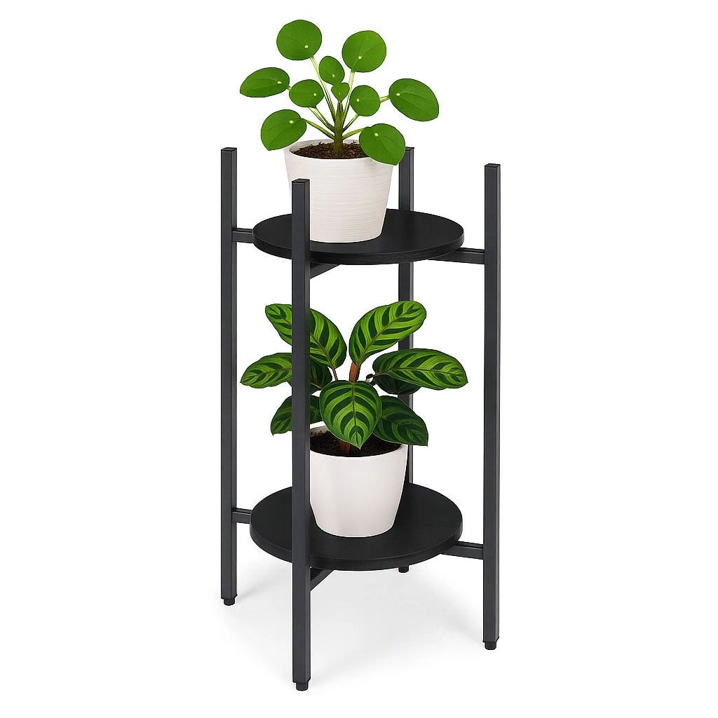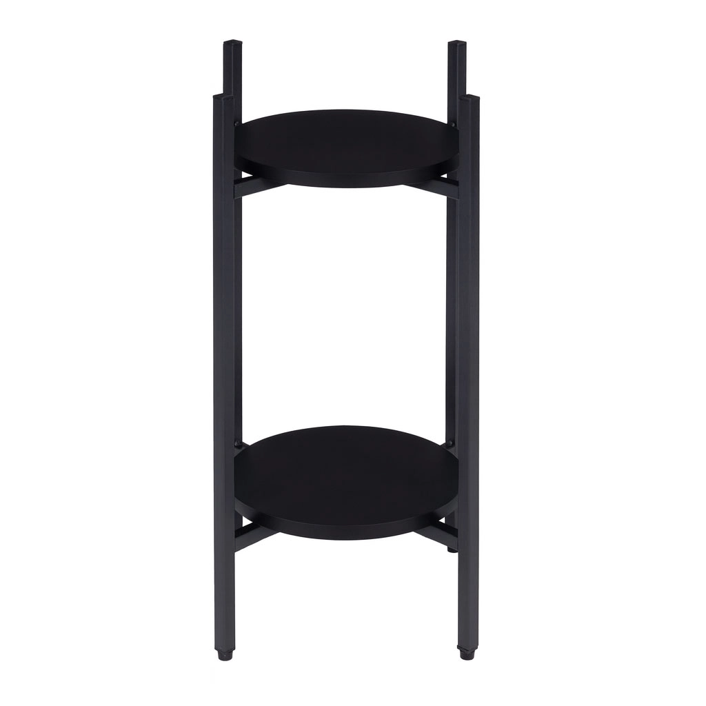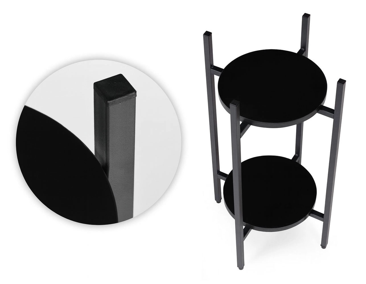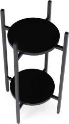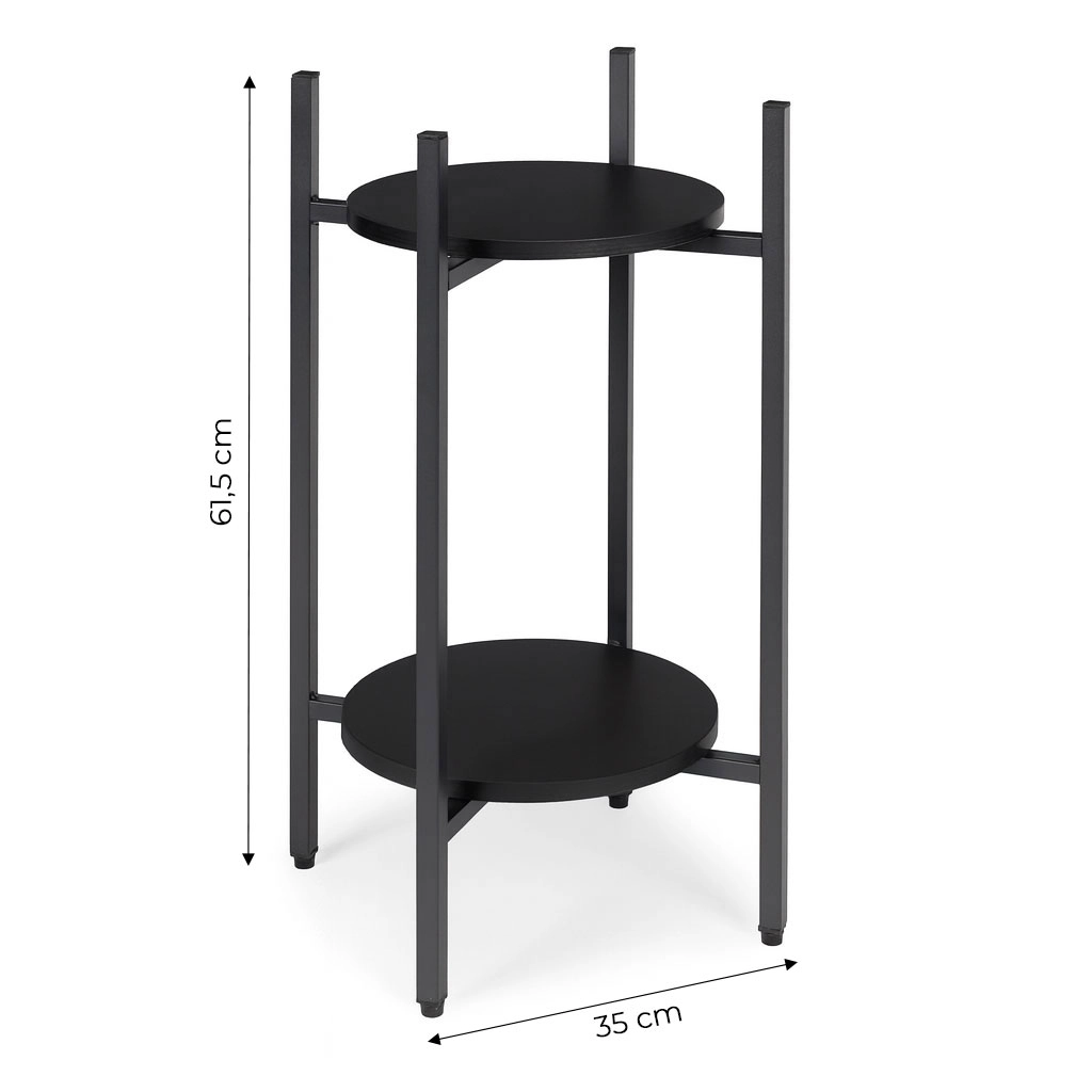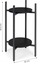 Dwie okrągłe półki zapewniają dość miejsca na rośliny i dekoracje, nie przytłaczając wnętrza. Idealny do małych i większych pomieszczeń.
