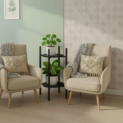 Odkryj sprytne rozwiązanie dla zielonych dekoracji. Dwupoziomowy stojak na kwiaty MODERNHOME łączy czysty, nowoczesny wygląd z praktycznym wykorzystaniem przestrzeni. Okrągłe metalowe półki elegancko wyeksponują zioła w kuchni, paprocie w holu i rośliny ozdobne w salonie, pomagając utrzymać wnętrze przejrzyste i lekkie.