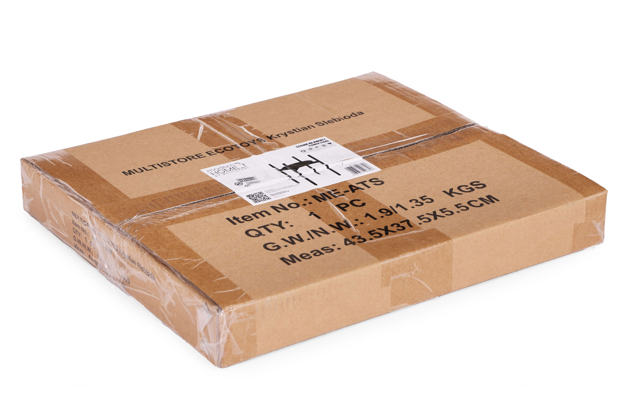 Konstrukcja z stali malowanej proszkowo zapewnia długą żywotność i stabilność, a antypoślizgowe nóżki chronią podłogę. Dzięki kompaktowym wymiarom stojak mieści się nawet w mniejszych przestrzeniach i sprawdzi się także jako mały stolik pomocniczy na świece, książki czy dekoracje.