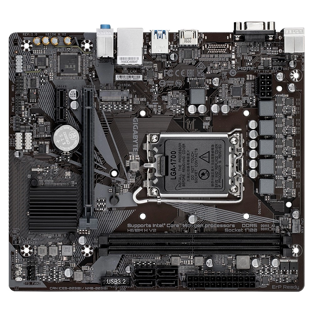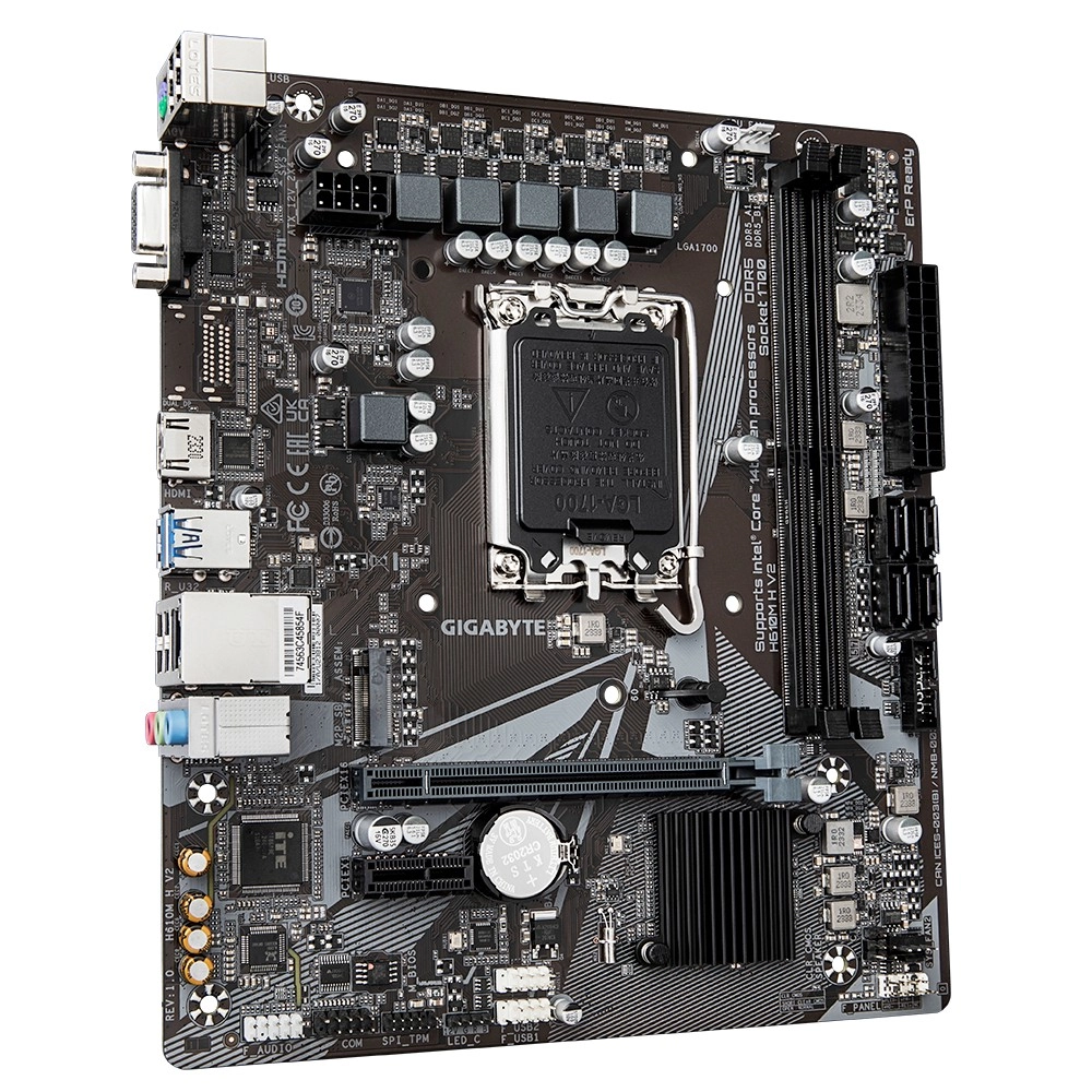 Zbuduj niezawodny komputer do pracy i rozrywki. Ta płyta mATX z chipsetem Intel H610 obsługuje procesory Intel Core 12., 13. i 14. generacji na gnieździe LGA1700 i oferuje nowoczesne wyposażenie w kompaktowej formie. Dzięki dwukanałowej pamięci DDR5 i gniazdu NVMe M.2 (PCIe 3.0 x4) łatwo uzyskasz szybkie reakcje systemu i aplikacji.