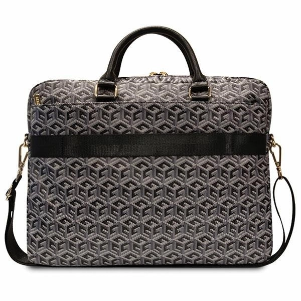 Torba GUESS Gcube Stripes to idealny wybór do codziennego noszenia laptopa i dokumentów. Ikoniczny wzór G Cube, czarne lamowanie oraz złote metalowe detale podkreślają luksusowy wygląd, a wysokiej jakości materiały zapewniają długą żywotność. Centralne logo GUESS potwierdza autentyczność i premium pochodzenie.