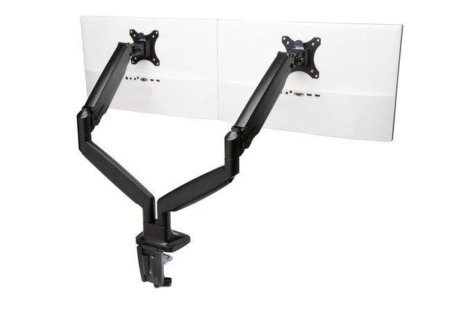 Wytrzymałe metalowe wykonanie dla monitorów 13–34" do 9 kg na ramię. Zintegrowane prowadzenie kabli utrzymuje porządek i zapewnia więcej miejsca na blacie roboczym.