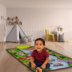 Dzięki czułym strefom dotykowym mata reaguje na każdy krok i dotyk – odtwarza melodie, realistyczne odgłosy zwierząt i zachęca dzieci do ruchu. Intuicyjna obsługa (włączanie/wyłączanie, regulacja głośności, przełączanie piosenek) zapewnia łatwe użycie dla dzieci i rodziców.