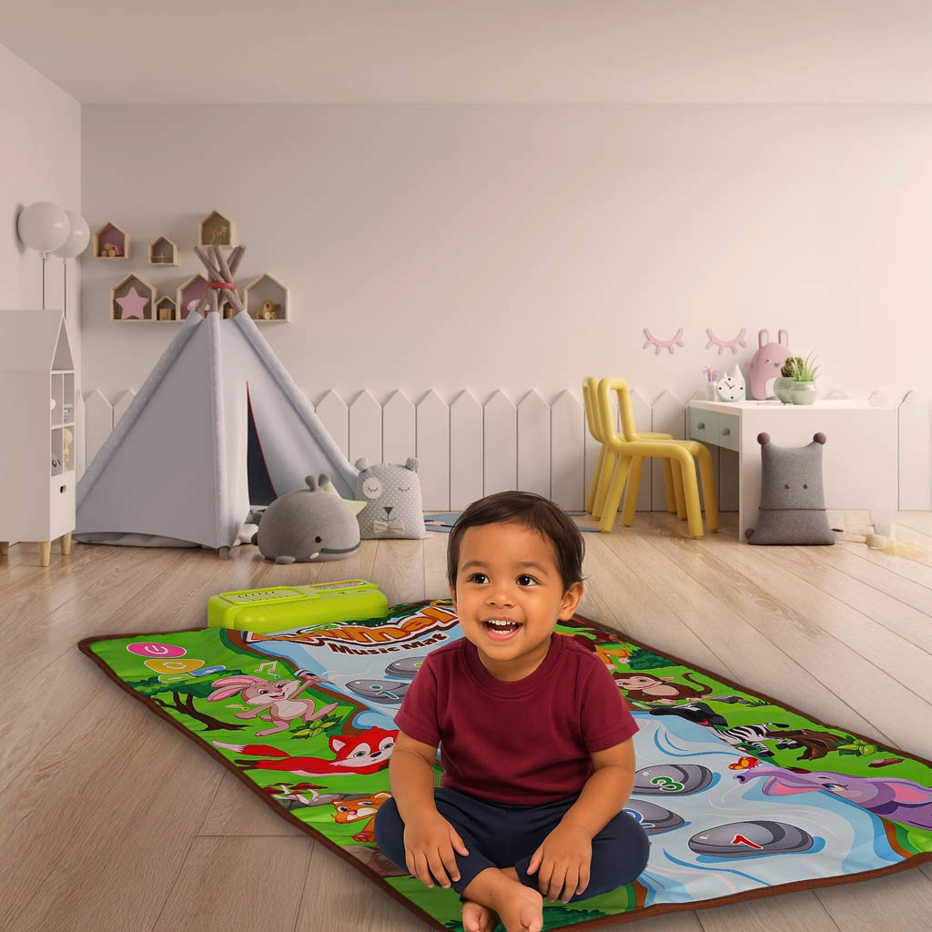 Odkryj zabawną i bezpieczną interaktywną matę muzyczną ze zwierzątkami, która łączy naukę, ruch i muzykę w jednym. Mata reaguje na dotyk, odtwarza melodie, odgłosy zwierząt i pomaga rozwijać słuch, poczucie rytmu, koordynację oraz kreatywność dzieci od 18 miesięcy.
