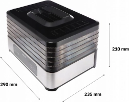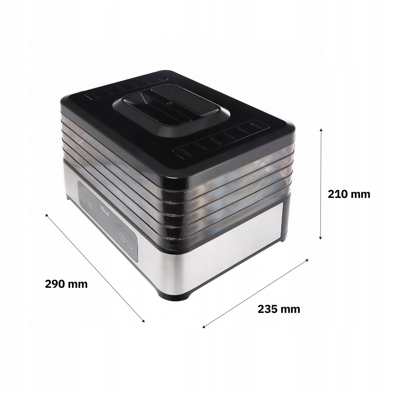 Obsługa jest maksymalnie prosta dzięki elektronicznemu panelowi LED z timerem od 30 minut do 24 godzin. Cicha i energooszczędna praca sprawdza się podczas nocnego suszenia, a przezroczysta konstrukcja pozwala na bieżąco obserwować postęp bez otwierania. Tace mają regulowaną wysokość dla różnych grubości plastrów, a urządzenie łatwo się rozkłada i czyści.