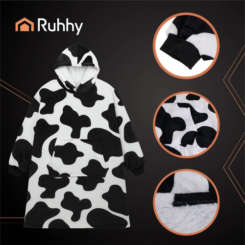 Ciesz się domowym komfortem w bluzie-kocu RUHHY XXL – połączeniu mięciutkiego koca i wygodnej bluzy z kapturem. Dzięki oversize’owemu krojowi oferuje maksymalną swobodę ruchów, ciepłe i grube wykonanie na chłodne wieczory oraz uniwersalny unisexowy rozmiar odpowiedni dla każdej sylwetki. Nowoczesny czarno-biały zwierzęcy wzór sprawia, że to stylowy element zarówno do domu, jak i na zewnątrz.