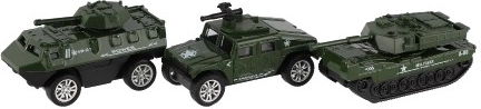 Zestaw zawiera 12 wojskowych pojazdów w skali 1:60, co zapewnia godziny zabawy dla dzieci. Większość wykonana jest z kombinacji metalu i plastiku, co gwarantuje długą żywotność i trwałość. Idealny dla dzieci, które lubią odkrywać różne wojskowe scenariusze i strategiczne gry.