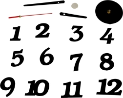 Zestaw zawiera cyfry, wskazówki i mechanizm – wszystko, czego potrzebujesz do szybkiego montażu na gładkiej powierzchni.