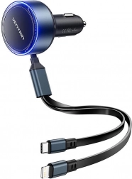 Kompaktowa ładowarka samochodowa Vention do gniazda 12–24 V umożliwia ładowanie nawet trzech urządzeń jednocześnie – ma zintegrowane płaskie przewody USB‑C i Lightning oraz boczny port USB‑C. Wspiera szybkie ładowanie do 30 W przez USB‑C, inteligentne zarządzanie prądem oraz zabezpieczenie przed przeładowaniem, przegrzaniem i przeciążeniem. Antypoślizgowe klipsy i aluminiowa obudowa zapewniają stabilne połączenie i wytrzymałość nawet na nierównych drogach.