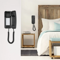 Gigaset Desk 200 łączy podstawowe funkcje telefoniczne z wyjątkowo smukłym i oszczędzającym miejsce designem. Dzięki możliwości montażu na ścianie lub postawienia na blacie biurka idealnie sprawdzi się w domu, hotelu, biurze, a także jako serwisowy telefon monterski. Zasilanie zapewnia bezpośrednio linia telefoniczna, więc nie jest potrzebny żaden zewnętrzny zasilacz.