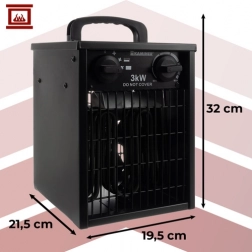 Elektryczna nagrzewnica KAMINER o mocy 3000 W jest idealna do domu, biura, warsztatu i na budowę. Dzięki silnemu przepływowi powietrza 514 m³/h szybko osiąga wymaganą temperaturę i utrzymuje ją za pomocą samoresetującego termostatu. Stopień ochrony IPX4 gwarantuje bezpieczne użytkowanie także w bardziej wilgotnym otoczeniu.