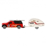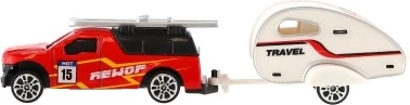 Przedstawiamy zabawkę, która maksymalnie rozbudza dziecięcą wyobraźnię. Auto z mini przyczepą wykonane jest z metalu i plastiku, co zapewnia długą żywotność i wytrzymałość. Całkowita długość zestawu to 14 cm, dzięki czemu to idealny towarzysz codziennej zabawy oraz podróży.