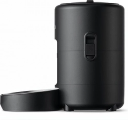 Niezawodna praca o każdej porze – podwójne zasilanie (zasilacz lub 3× bateria typu D, brak w zestawie) zapewnia ciągłość nawet przy zaniku prądu. Podajnik obsługuje karmę suchą, mieszaną, suszoną powietrznie i liofilizowaną, więc łatwo dopasujesz dietę do potrzeb swojego zwierzęcia.