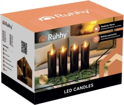 Dzięki oszczędnej technologii LED i zasilaniu 2× baterie AA (brak w zestawie) świece świecą stabilnie przez wiele godzin bez obsługi. Klasa IP20 jest odpowiednia do wnętrz i miejsc osłoniętych. Eleganckie czarne wykończenie pięknie prezentuje się w latarniach, wieńcach, świecznikach i nowoczesnych dekoracjach.