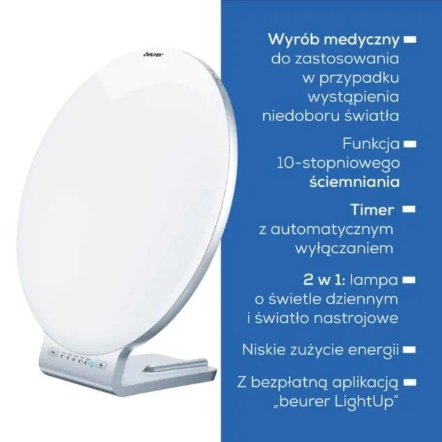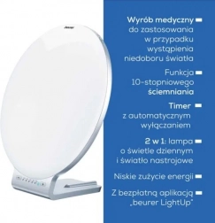 BEURER TL 100 to elegancka lampa do terapii światłem, która symuluje naturalne światło dzienne i pomaga poprawić nastrój, koncentrację oraz poranną energię. Intensywność do 10 000 luksów (z odległości około 10 cm) dostarcza wystarczająco dużo światła na krótkie, efektywne sesje, idealne na rozpoczęcie dnia.
