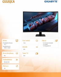 GIGABYTE GS32QCA oferuje idealne połączenie płynności i detali do gier rywalizacyjnych i fabularnych. Zakrzywiony panel VA o rozdzielczości QHD zapewnia wyraźnie wyższą ostrość niż Full HD, a odświeżanie 180 Hz i szybka reakcja minimalizują rozmycie ruchu i tearing.