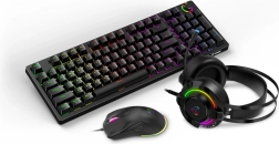 Podświetlenie RGB wszystkich trzech peryferiów pozwala zgrać wygląd całego zestawu i stworzyć niepowtarzalną atmosferę. Dzięki solidnemu wykonaniu i przemyślanym detalom ten zestaw gamingowy jest idealny do gry konkurencyjnej, pracy i rozrywki.
