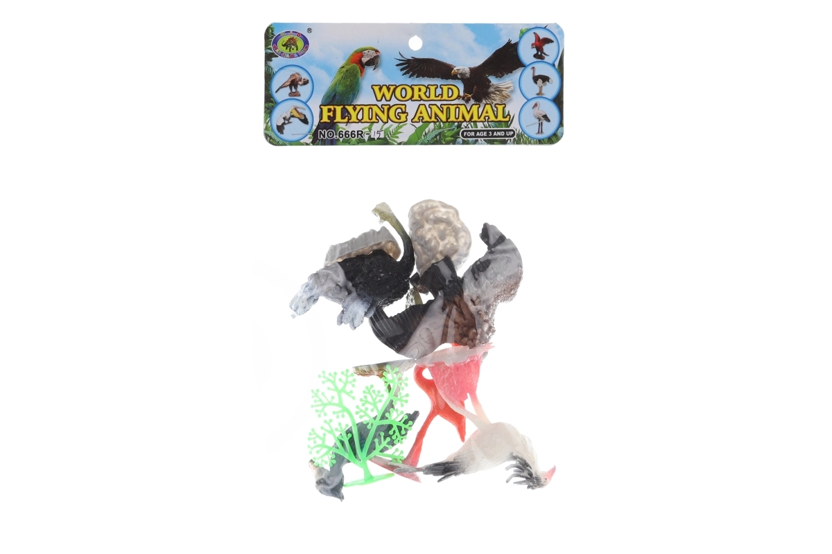 Zestaw zawiera pięć ptaszków o wielkości ok. 9 cm, plastikowe drzewo oraz dwa plastikowe kamienie. Wszystko zapakowane jest w praktyczny woreczek, który łatwo przechowywać i przenosić. Zabawka odpowiednia dla dzieci od 3 lat.