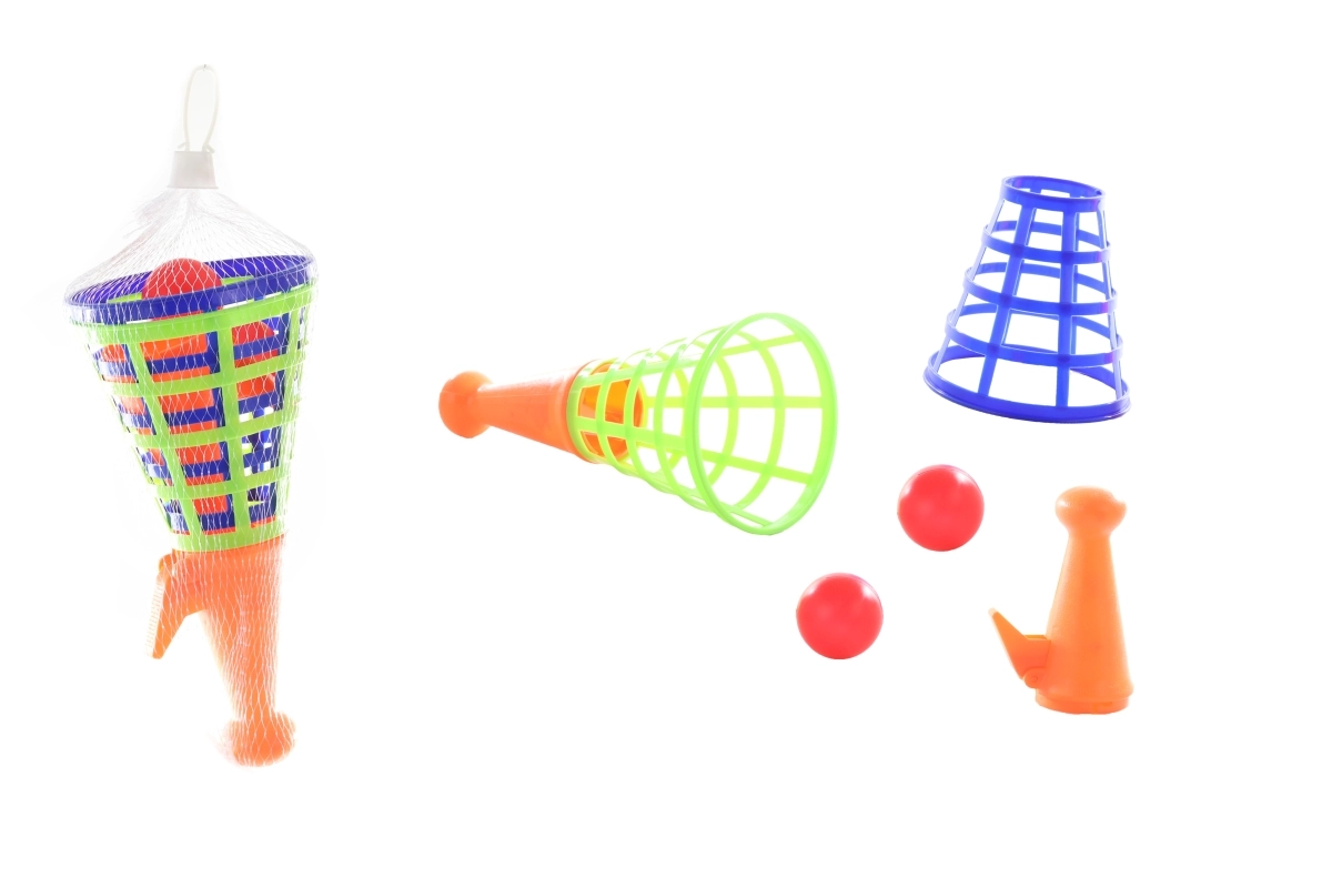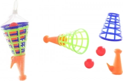 Zabawny zestaw do aktywnej zabawy w domu i na zewnątrz! Plastikowe wyrzutniowe koszyczki w praktycznej siateczce zawierają 2 koszyczki i 2 piłeczki. Prosta obsługa, lekka konstrukcja oraz wymiary ok. 20 × 10 × 10 cm gwarantują wygodne użytkowanie. Idealne dla dzieci od 3 lat do treningu koordynacji i refleksu.