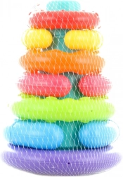 Ta klasyczna wieża z pierścieniami to świetna pierwsza zabawka rozwijająca motorykę małą, koordynację oko–ręka i logiczne myślenie. Dzieci mogą nakładać pierścienie według rozmiaru, sortować je kolorami i odkrywać podstawowe zasady układania.