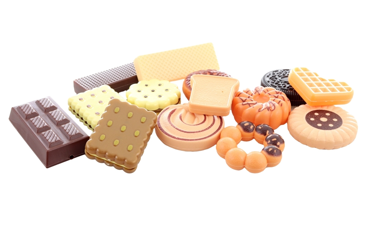 Zabawny dziecięcy zestaw jedzenia zawiera wafle, ciasteczka, czekoladę i gofry z wysokiej jakości plastiku. Świetny do zabawy w kuchnię, rozwoju wyobraźni i umiejętności społecznych. Dostarczany w pudełku prezentowym. Odpowiedni dla dzieci od 3 lat.