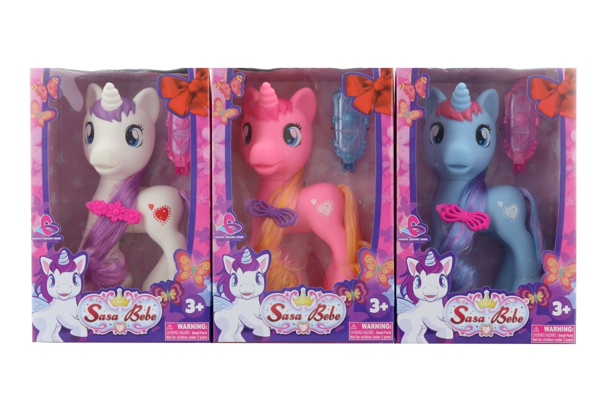 Uroczy jednorożec z grzywą i ogonem do czesania ucieszy każdego małego miłośnika koników. Zestaw zawiera grzebyk i spinkę do grzywy dla łatwego ozdabiania. Zabawka jest wykonana z trwałego plastiku, odpowiednia od 3 lat i dostępna w trzech wariantach kolorystycznych w zależności od dostępności w magazynie.