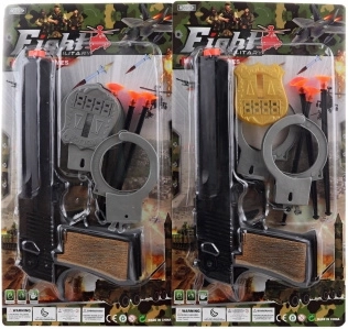 - Pistolet na naboje z przyssawką, kajdanki, odznaka, 3 naboje