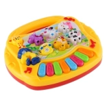 Dzięki pianku dzieci mogą odtwarzać melodie, a to nie wszystko — na pianku znajduje się przycisk telefonu, który służy do przełączania trybów. Po naciśnięciu aktywujesz nazwy zwierzątek, odgłosy zwierząt, muzykę, rytmy lub pytania (znajdź zwierzątko). Wszystko w języku angielskim. Zabawka zasilana 3 bateriami AA, które nie są dołączone.