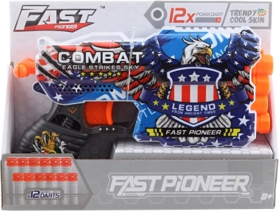 Przeżyj pełną akcji zabawę z pistoletem na piankowe naboje Orzeł, który wyróżnia się wyrazistym orlim designem. Lekka plastikowa konstrukcja zapewnia wygodny chwyt i łatwe ładowanie, dzięki czemu idealnie nadaje się do szybkich potyczek i treningu celności.