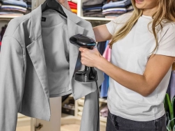 Odświeżaj ubrania bezpośrednio na wieszaku. Składana rączka oszczędza miejsce i sprawia, że urządzenie jest idealnym wyborem do domu i w podróży.