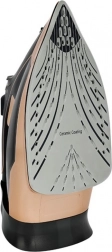 Powierzchnia prasująca z ceramiczną powłoką równomiernie rozprowadza ciepło, jest odporna na zarysowania i zapewnia płynne przesuwanie po wszystkich rodzajach tkanin.