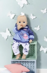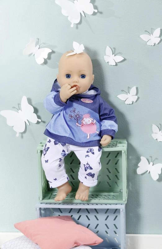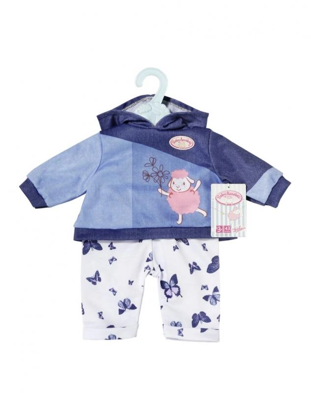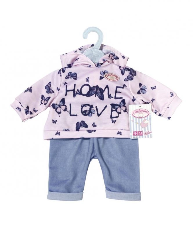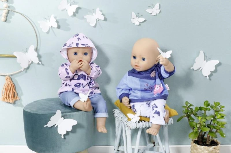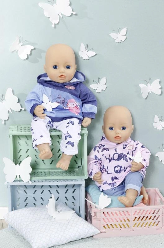 Podaruj swojej lalce BABY ANNABELL przytulny domowy strój. Zestaw oferuje dwa różne looki: różową bluzę z kapturem z delikatnymi motylkami i spodnie w stylu jeansowym albo niebieską bluzę z kapturem z uroczym obrazkiem oraz wygodne sportowe spodnie. Materiały są miękkie i przyjemne w dotyku, idealne do codziennej zabawy.