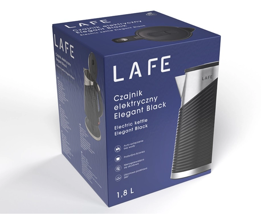 Stylowy czajnik elektryczny Lafe Elegant Black łączy nowoczesny design i bezpieczną pracę. Dzięki mocy 1800 W szybko zagotowuje wodę, podwójna ścianka dłużej utrzymuje ciepło, a powierzchnia cool touch pozostaje chłodna w dotyku. Na wyposażeniu są automatyczne wyłączenie przy braku wody, zabezpieczenie przed przegrzaniem, filtr antyosadowy oraz płytowa grzałka ułatwiająca czyszczenie.