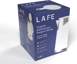 Stylowy i bezpieczny czajnik LAFE Elegant White oferuje szybkie zagotowanie 1800 W, podwójną ściankę dla lepszej izolacji, chłodną w dotyku obudowę Cool Touch dla bezpiecznego użytkowania oraz filtr kamienia dla czystszego smaku napojów.