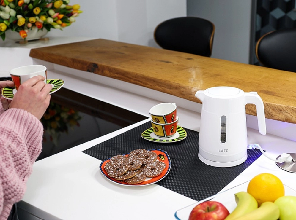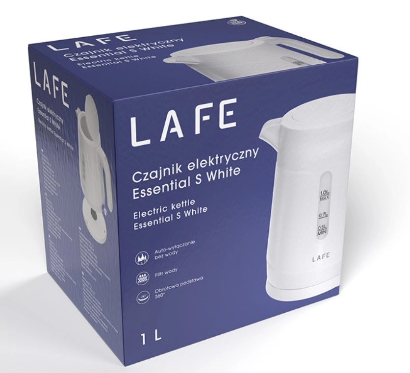 Praktyczny i niezawodny czajnik elektryczny LAFE Essential S w białym kolorze zapewnia szybkie gotowanie wody, prostą obsługę i czysty, nowoczesny design. Dzięki kompaktowym wymiarom świetnie pasuje na blat kuchenny, a pojemność 1 l jest w sam raz na herbatę, kawę czy zupkę instant.