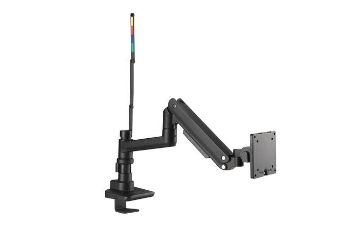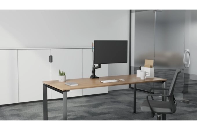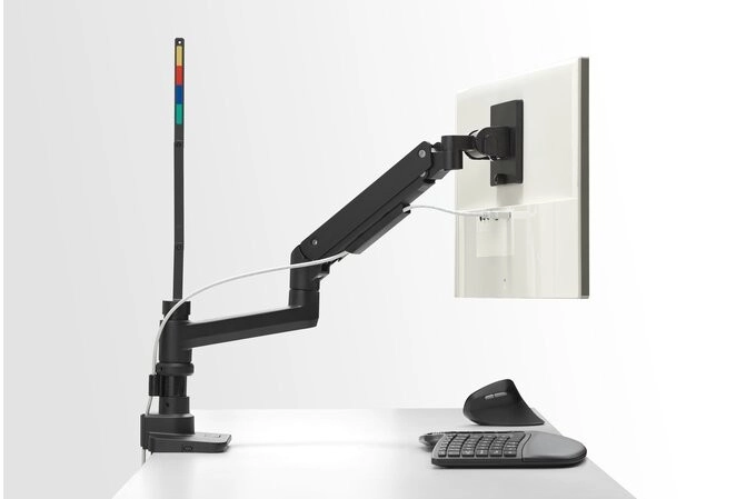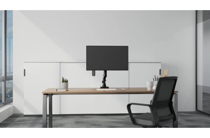 Ramię zaprojektowano dla dużych i ciężkich ekranów – obsługuje jeden monitor do 49" i 20 kg z mocowaniem VESA 75/100/200/300. Wstępnie zainstalowana klamra typu C przyspiesza montaż, a szybkozłączane płytki VESA ułatwiają zakładanie i zdejmowanie monitora. Zintegrowany kanał prowadzenia przewodów utrzymuje miejsce pracy w czystości i przejrzystości.