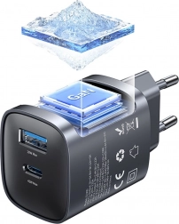 USAMS T66 o mocy 45 W wykorzystuje nowoczesną technologię GaN dla wysokiej sprawności w małej obudowie. Jeden port USB‑C i jeden USB‑A umożliwiają szybkie ładowanie szerokiej gamy urządzeń – od smartfonów i tabletów po kompatybilne laptopy z zasilaniem USB‑C.